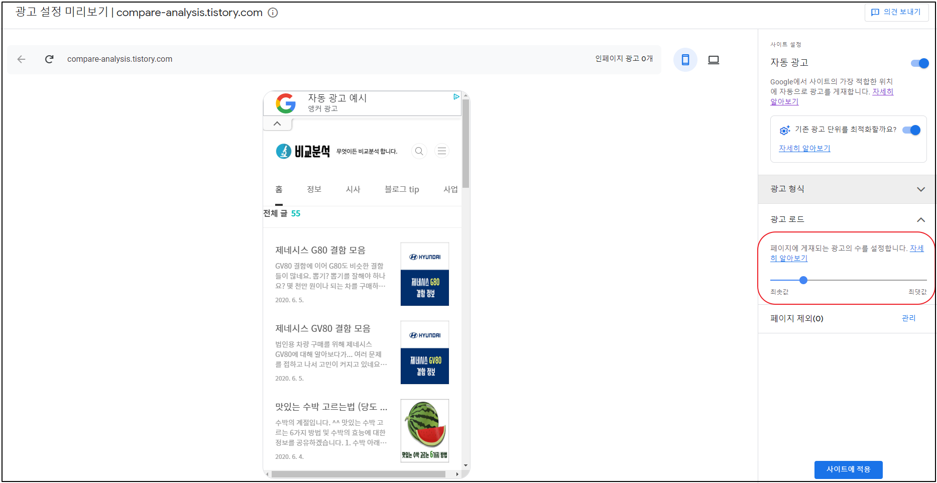 저는 승인직전까지 자동 광고를 연동해놨었습니다.